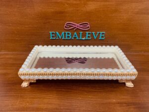 Bandeja Decorada P Perolada Dourada 10x20cm