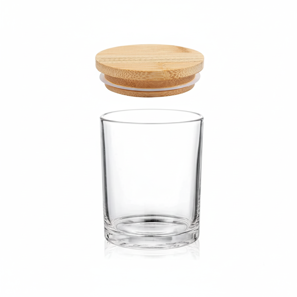 Copo de Vidro 120ml com Tampa Madeira